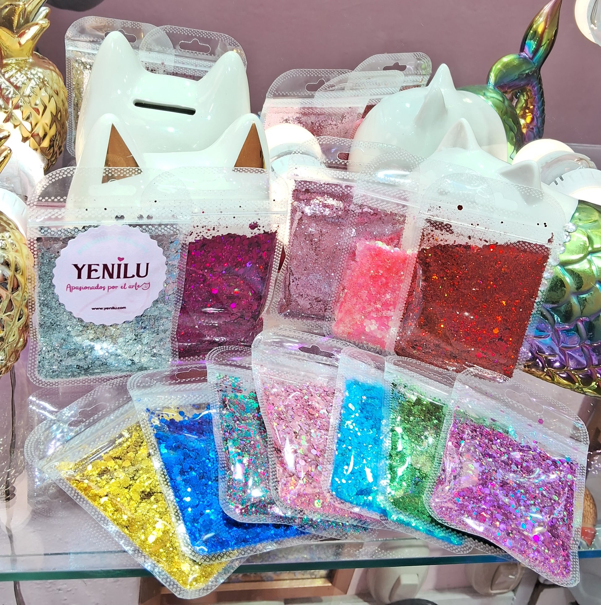 - Set de 12 Sachets glitter efecto Sirena (3gr c/u) (todos los glitters son de diferentes colores)(imagen referencial)