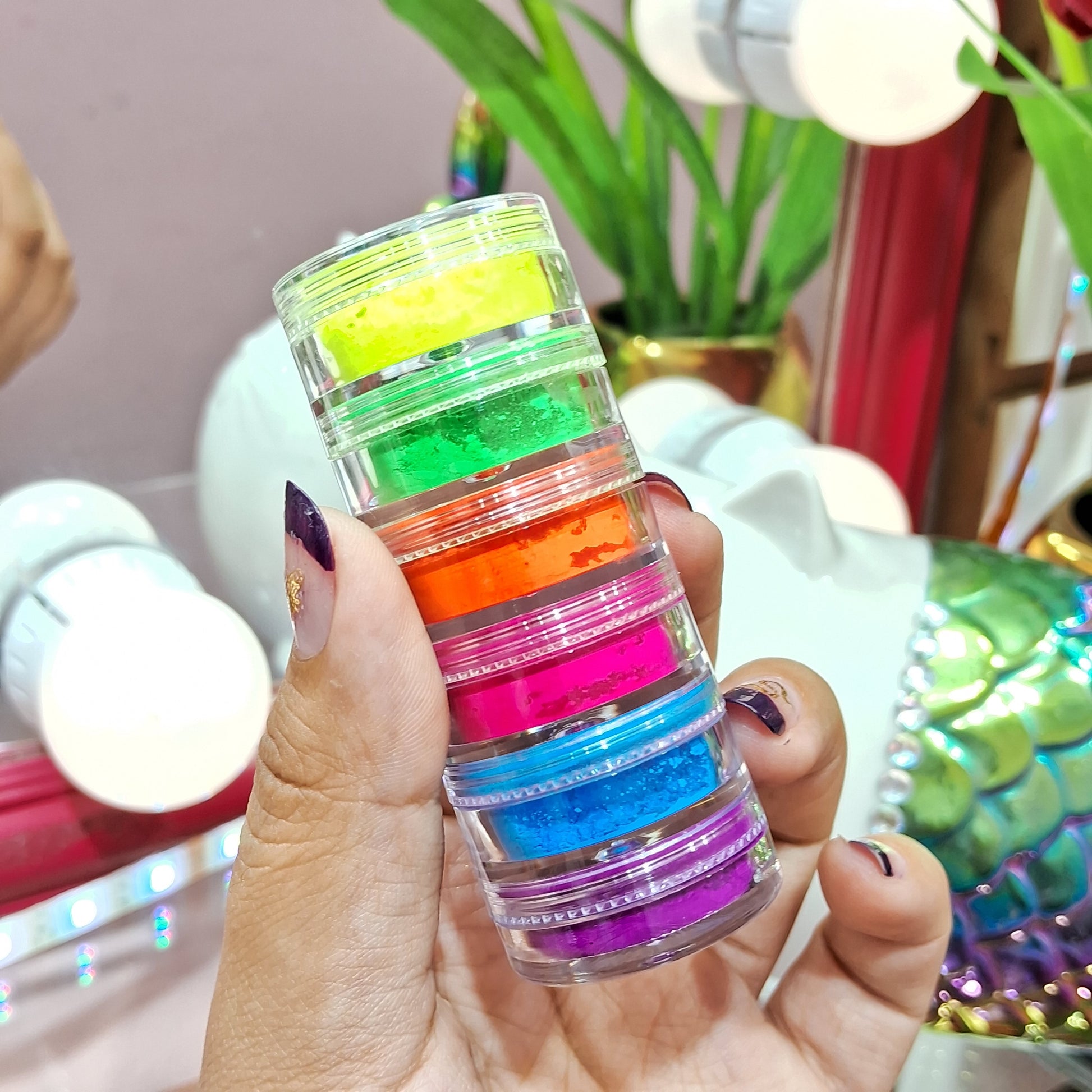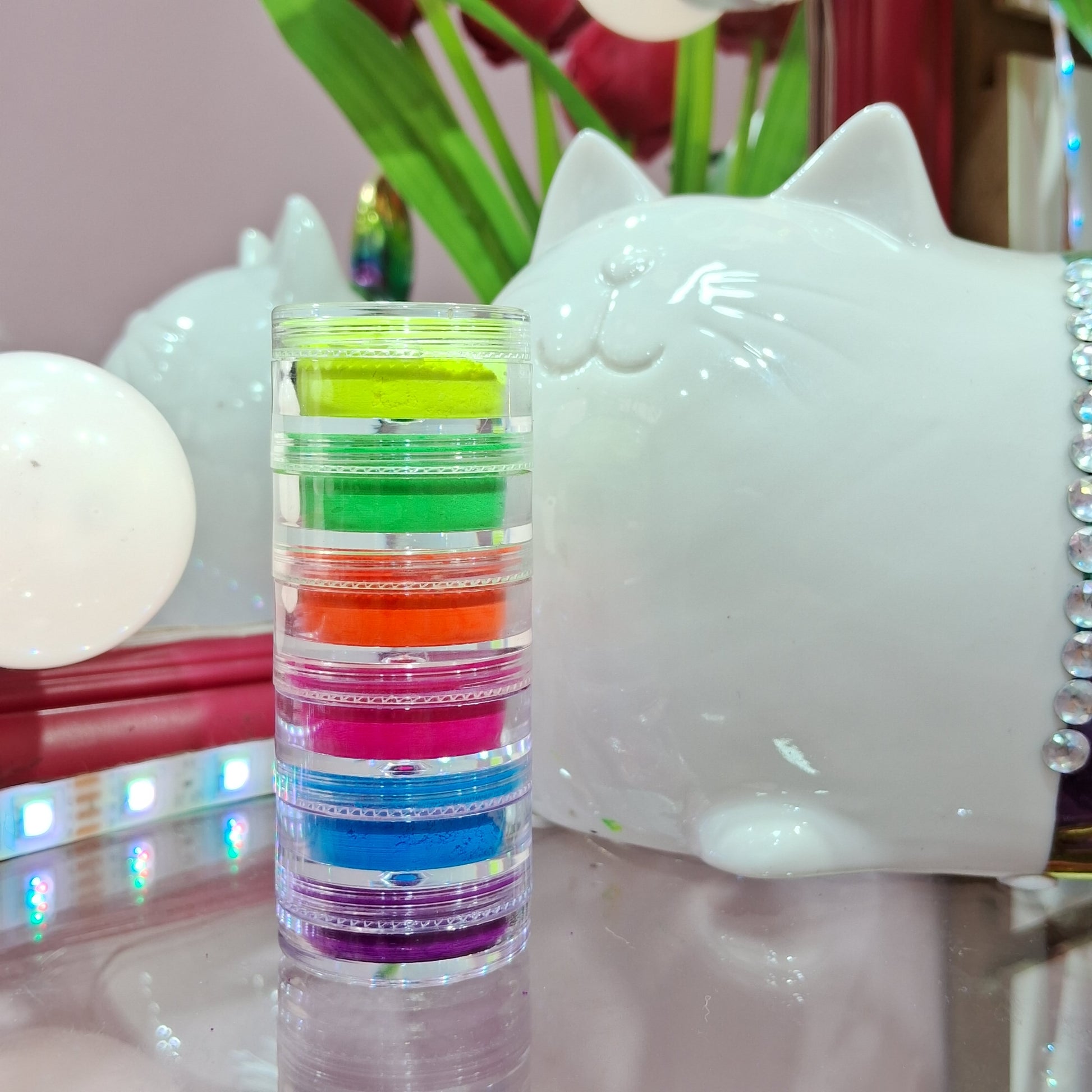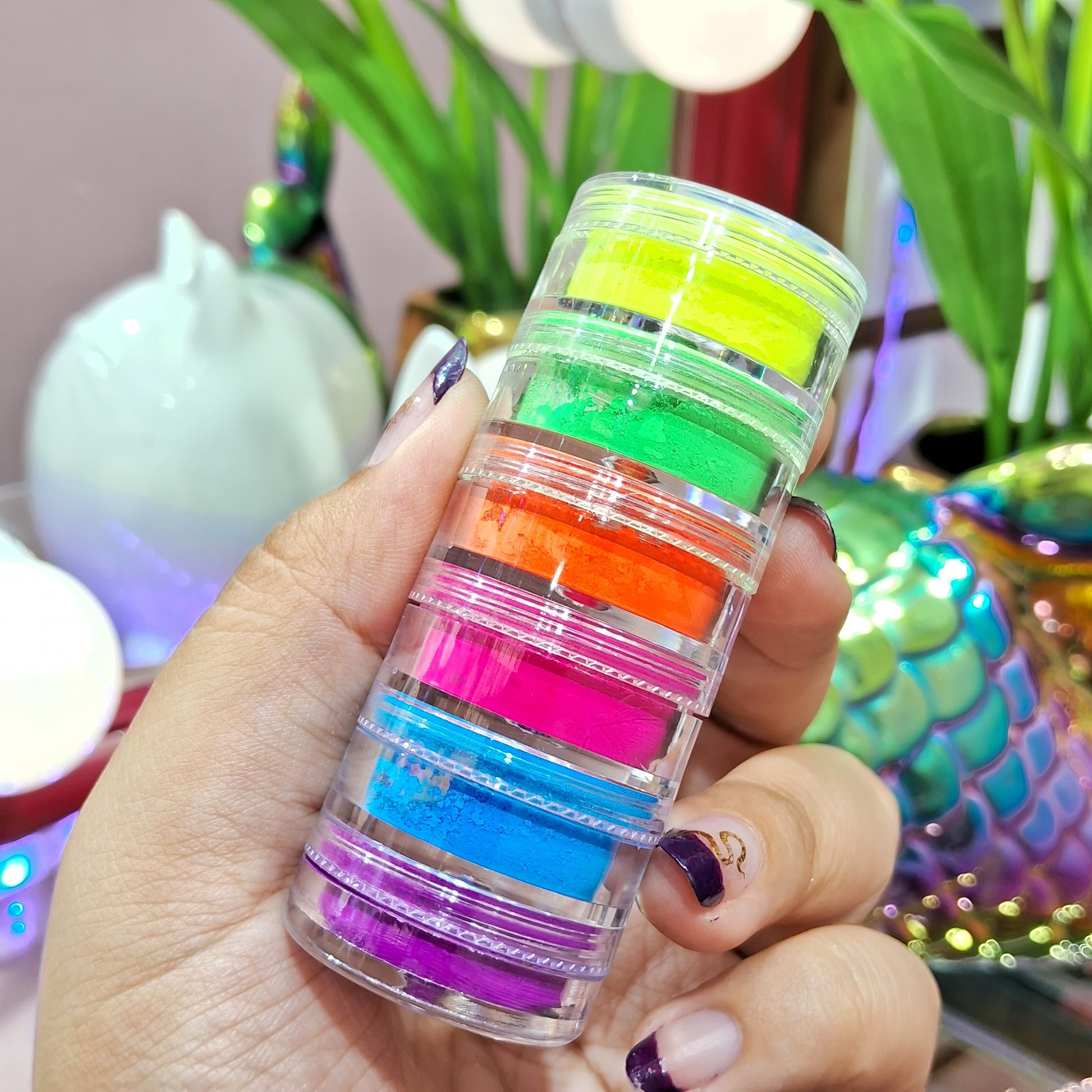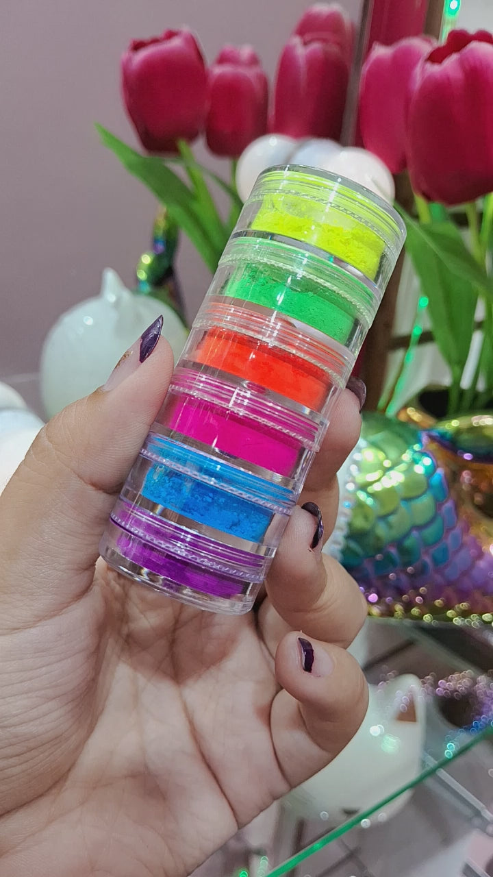 00082sku- Pigmento neón en polvo torre de 6 colores