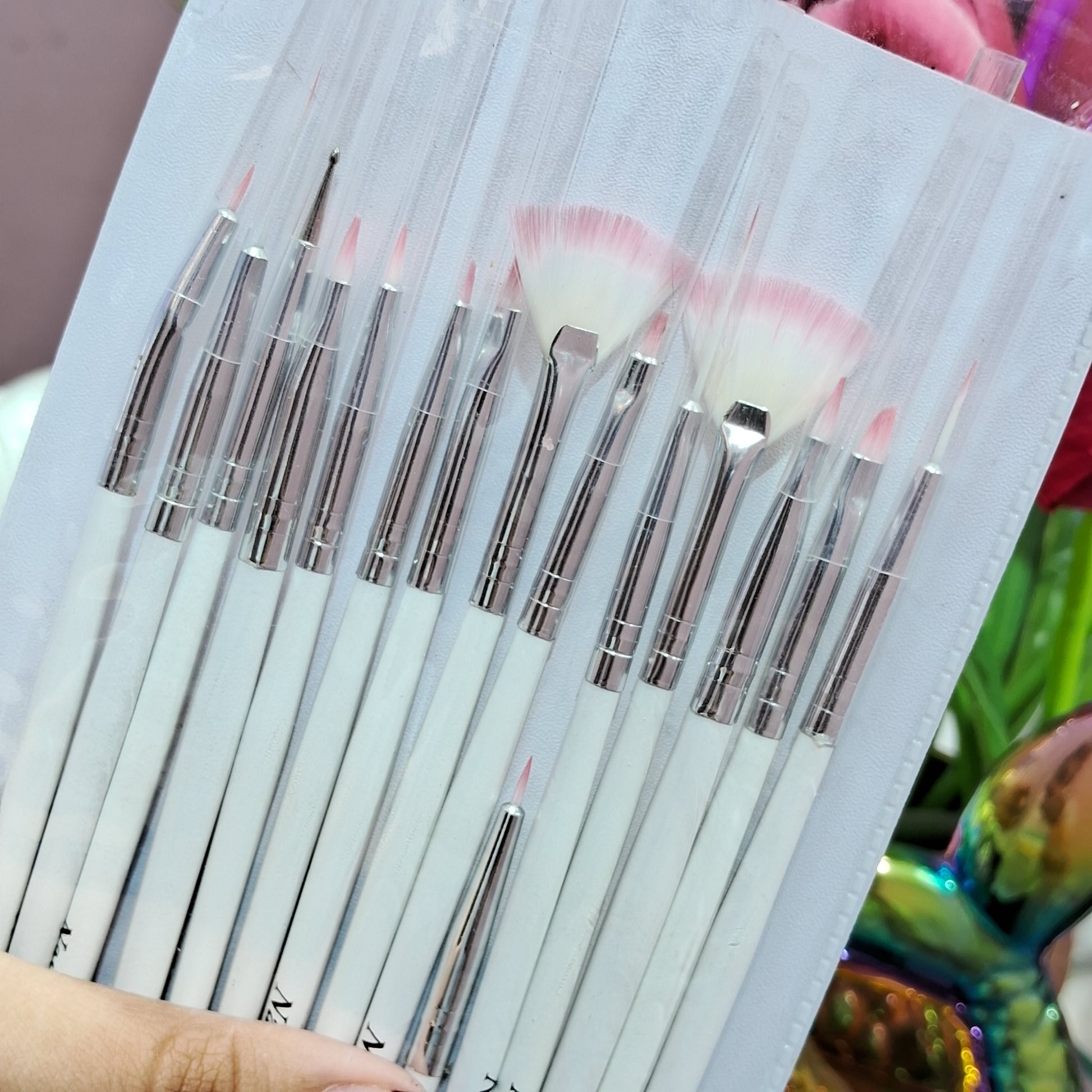 Set de 15 pinceles de diferentes formas para multiples acabados . Ideales para maquillajes artísticos ,
