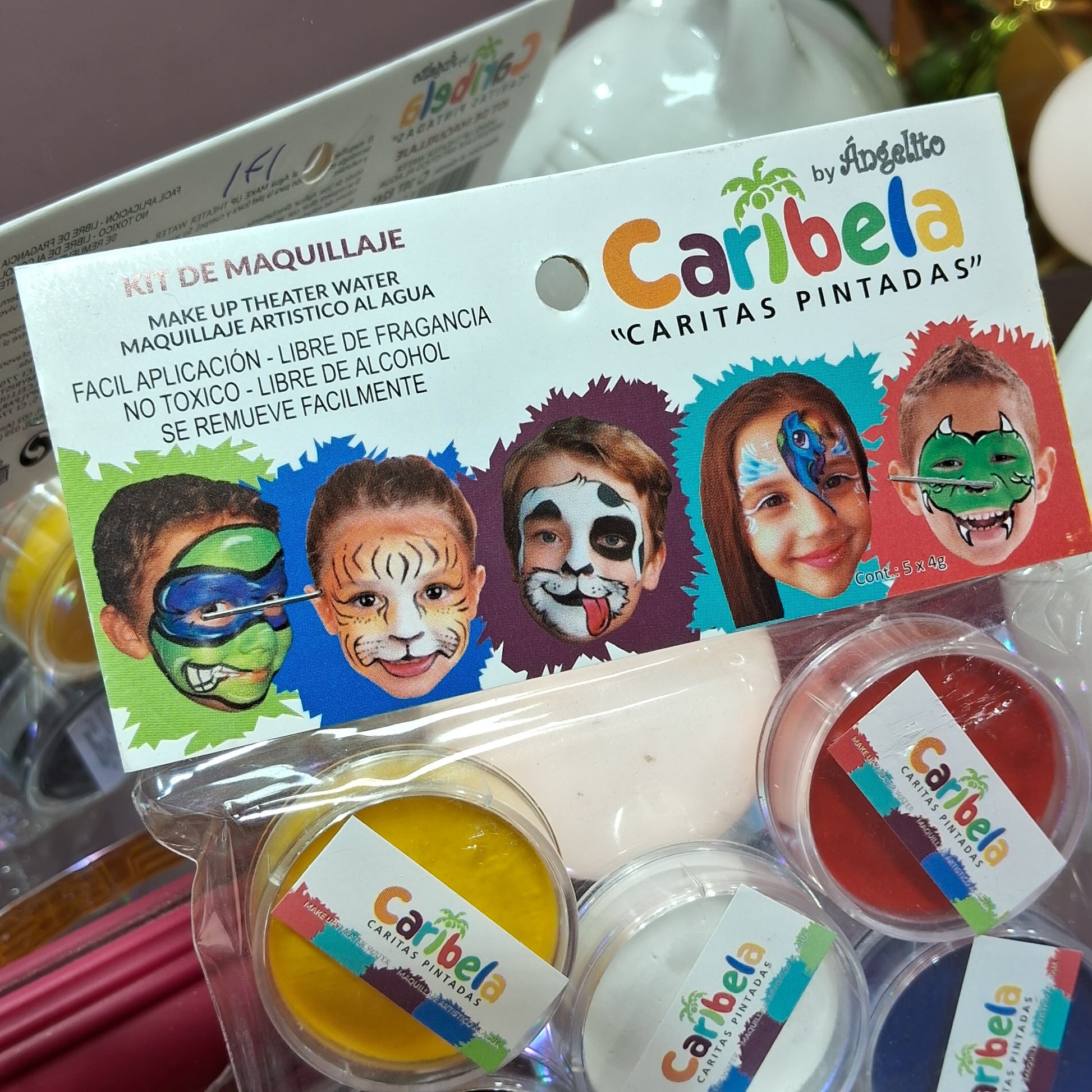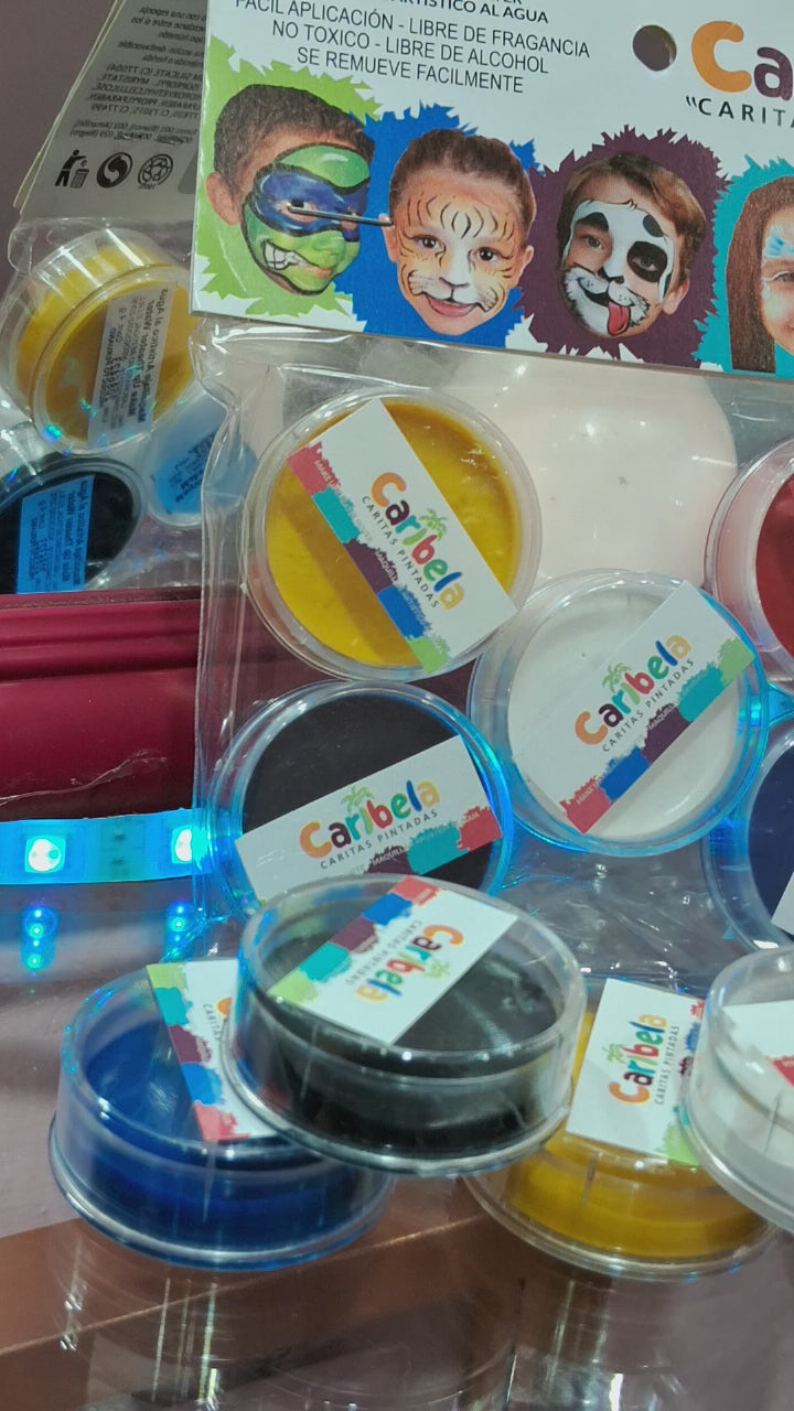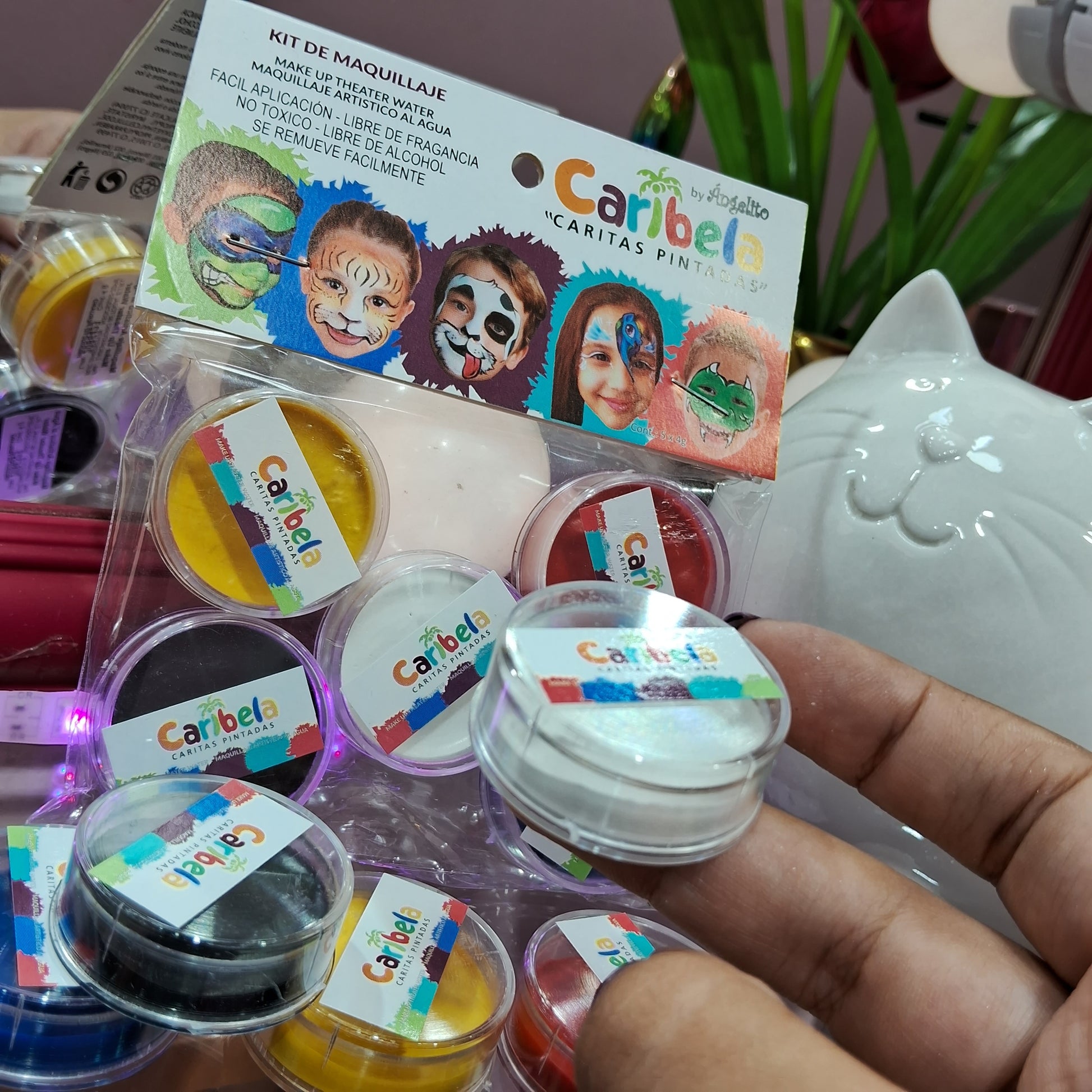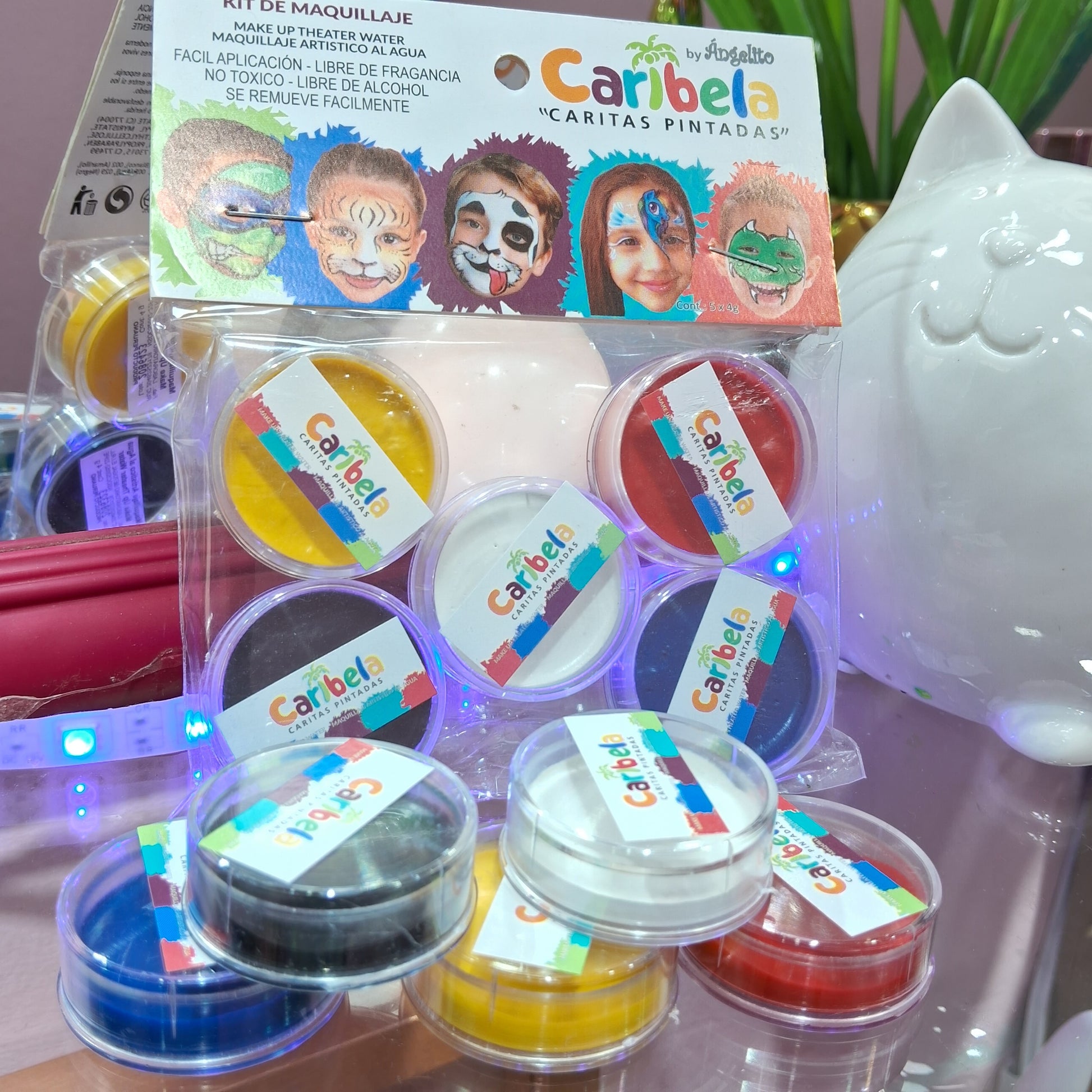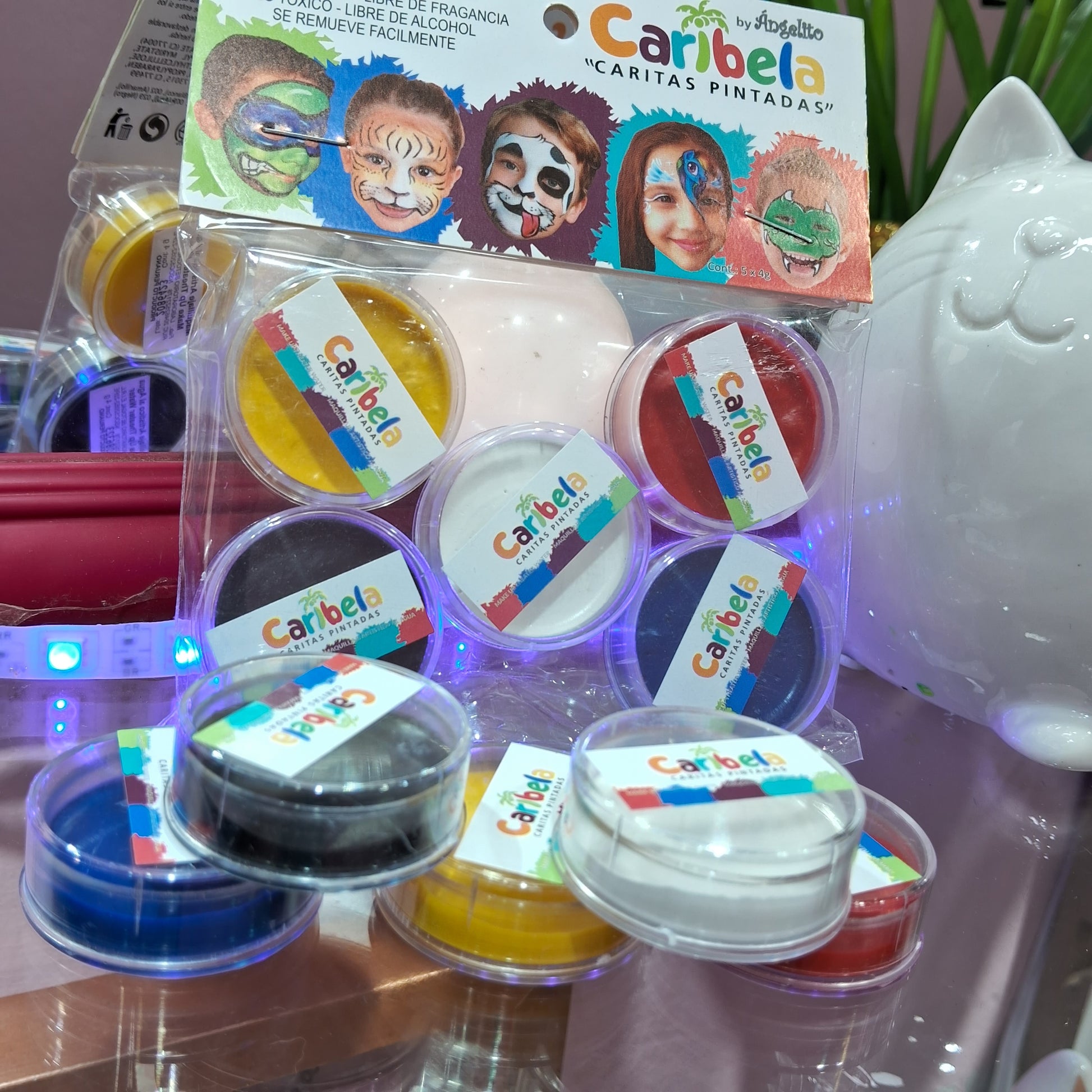 Pack de pinturas de acabado matte de la marca Caribela, para maquillaje artístico. Son de buena pigmentación.