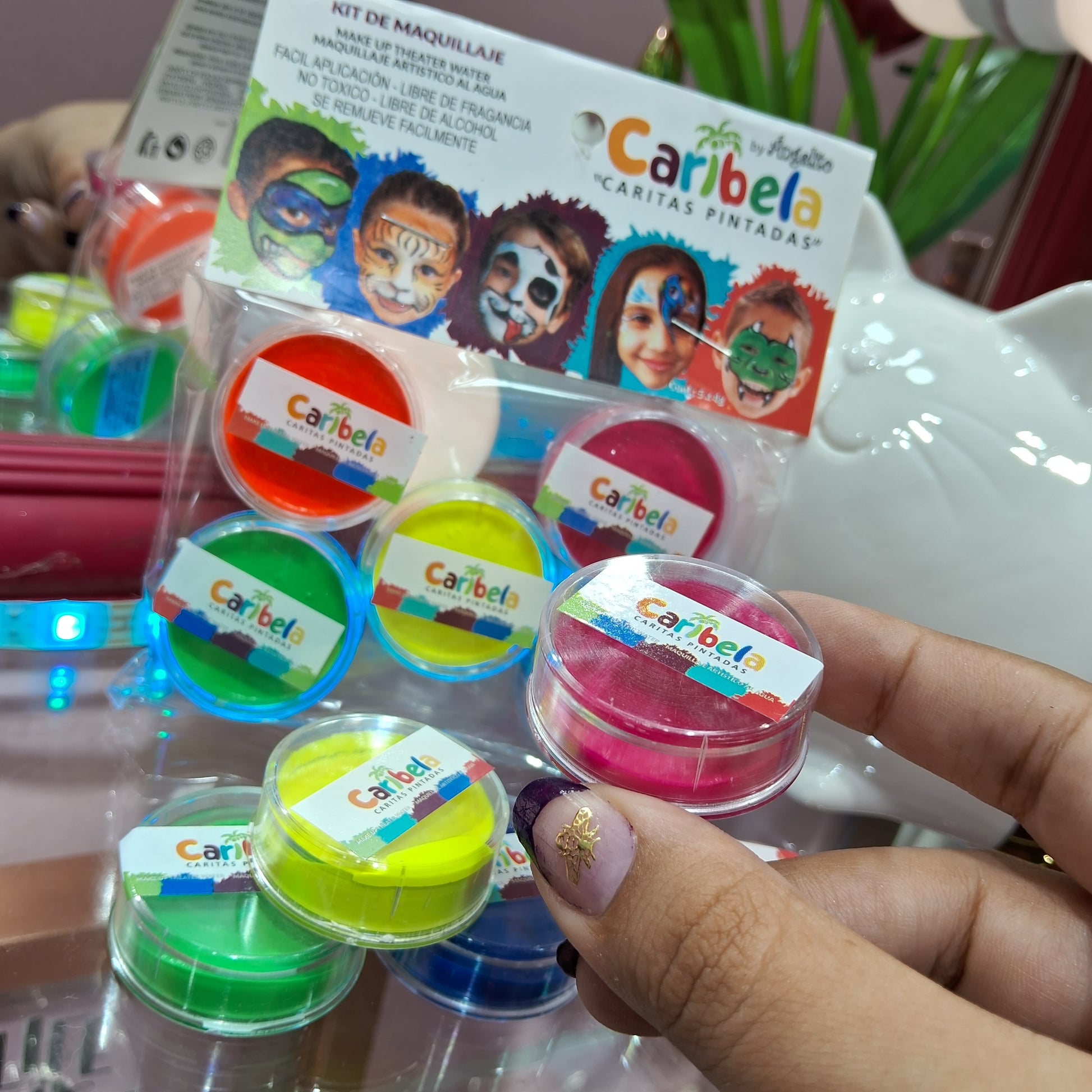 00194sku- Pintura neón en crema pack 5 unidades - caritas pintadas(Caribela)