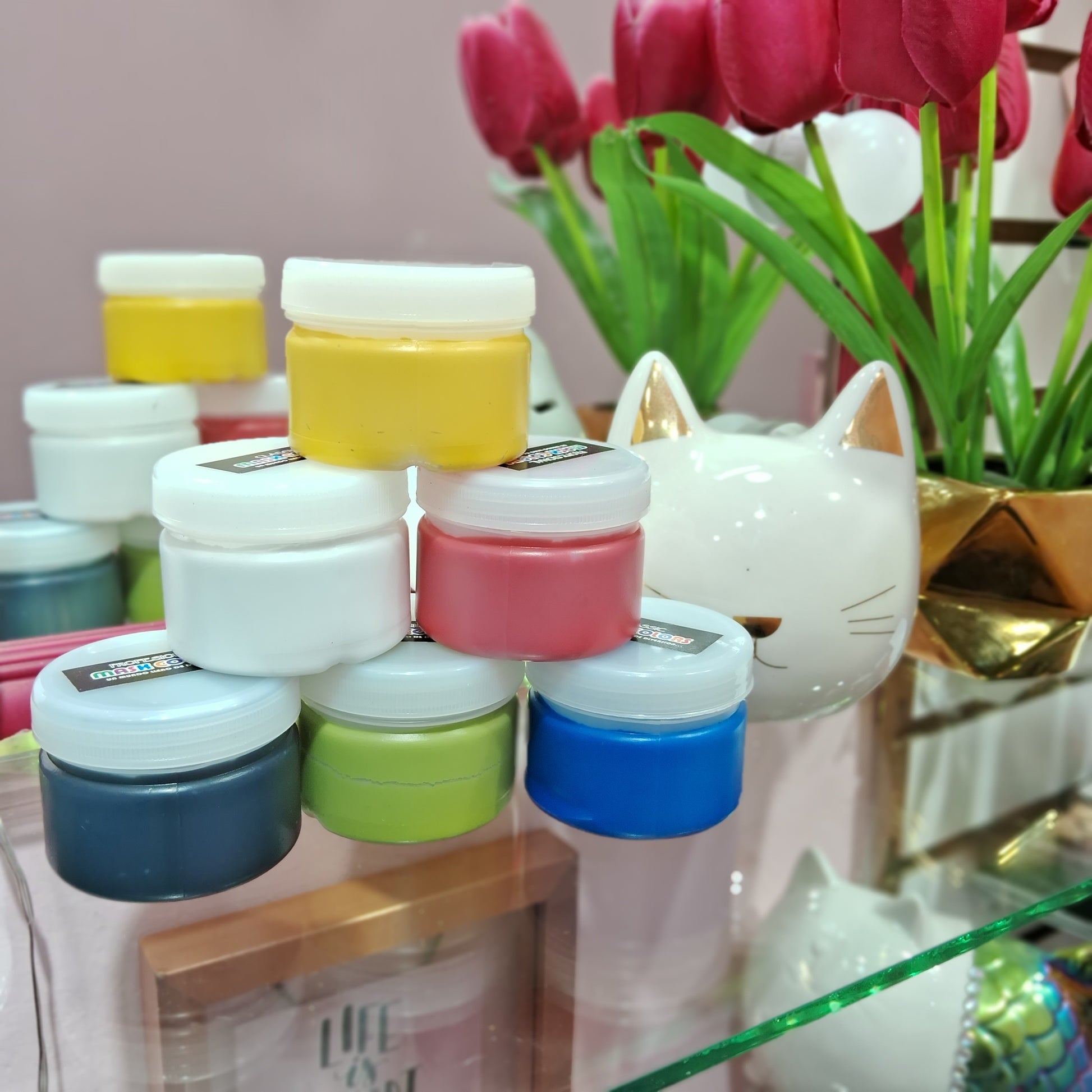 Las pinturas son cremosas, y las puede trabajar con agua de ser necesario, pero apliquelas con un atomizador , y mezclelas hasta lograr la textura deseada🌈