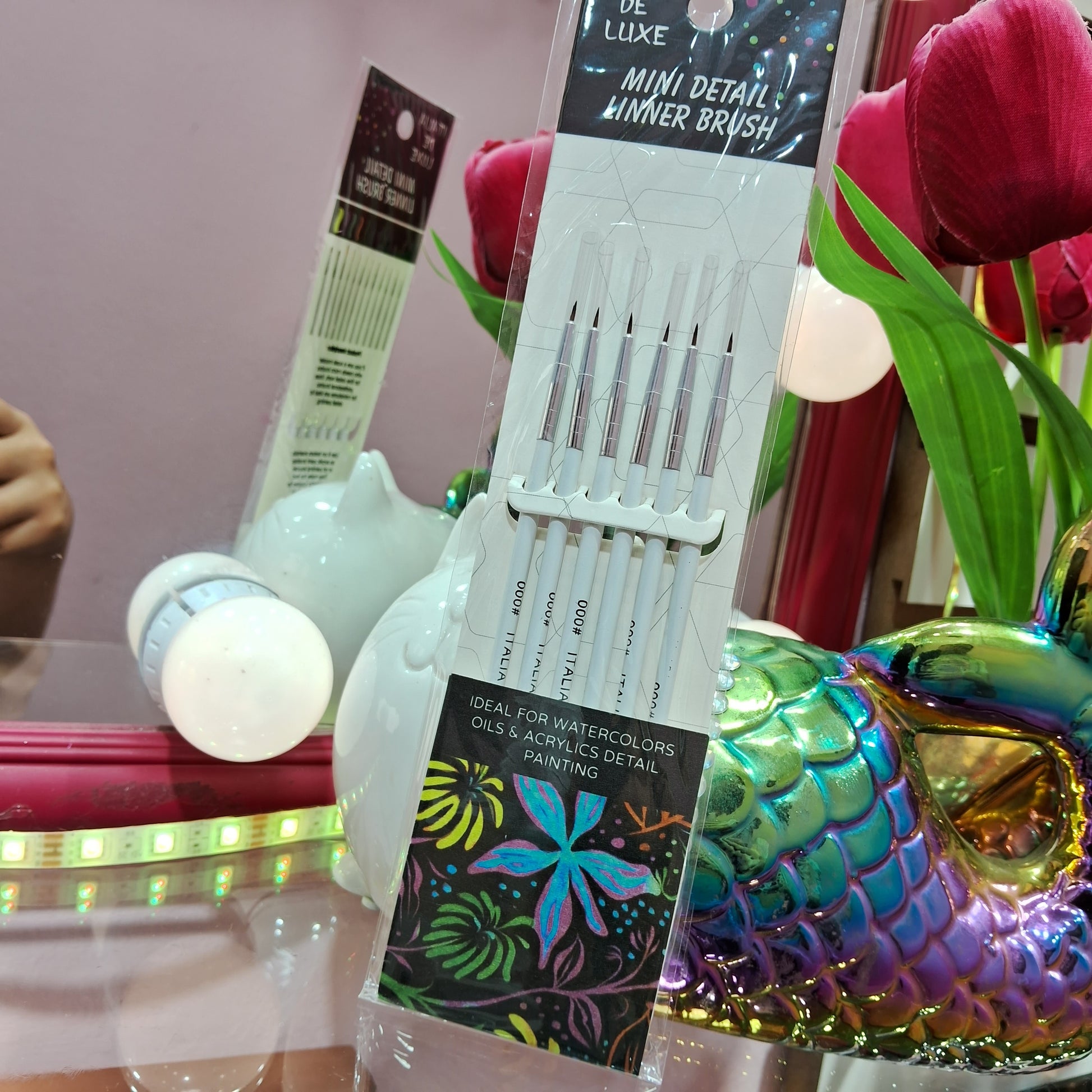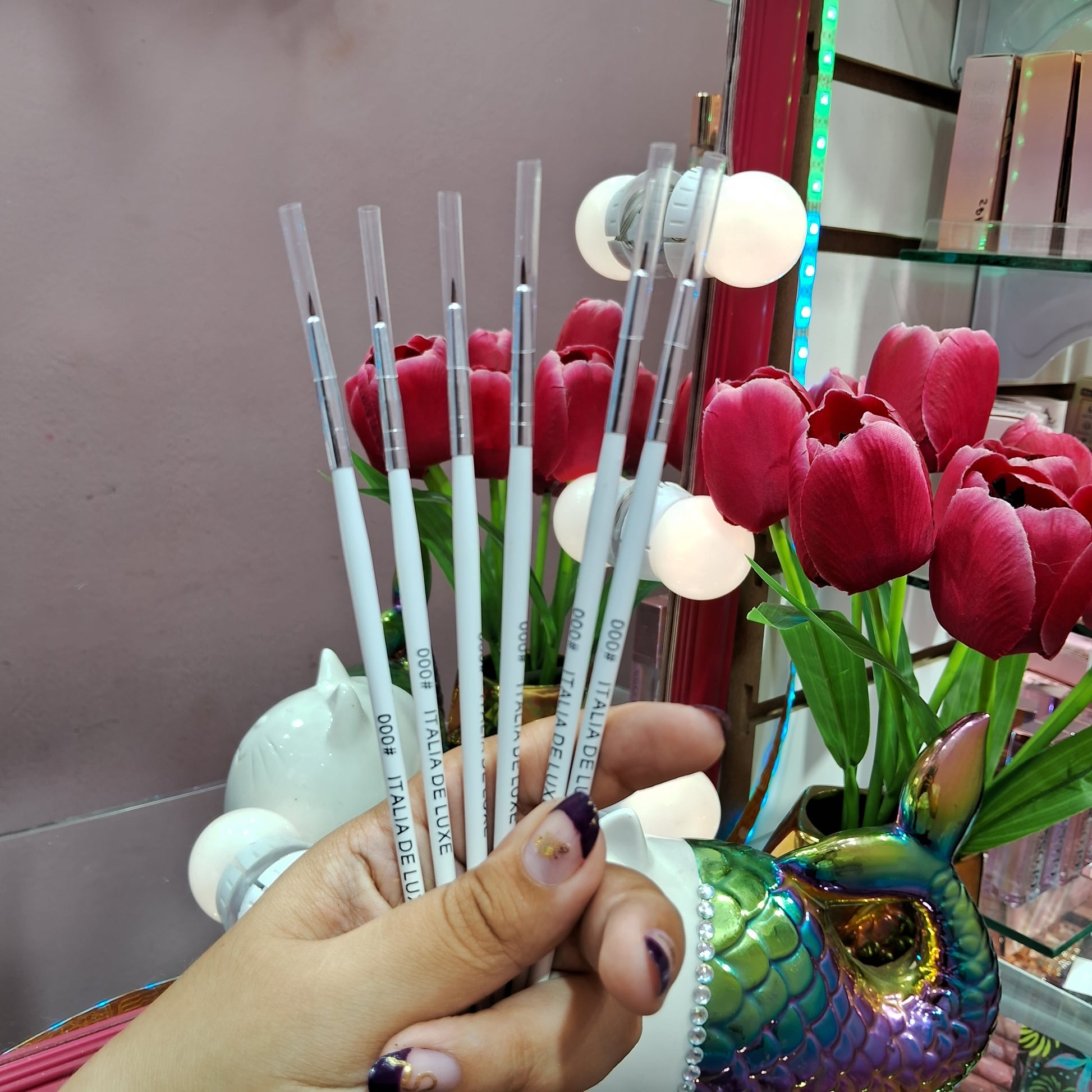 Pinceles profesionales en set de 6 piezas, de punta extra delgada para la perfección de los trazos.
