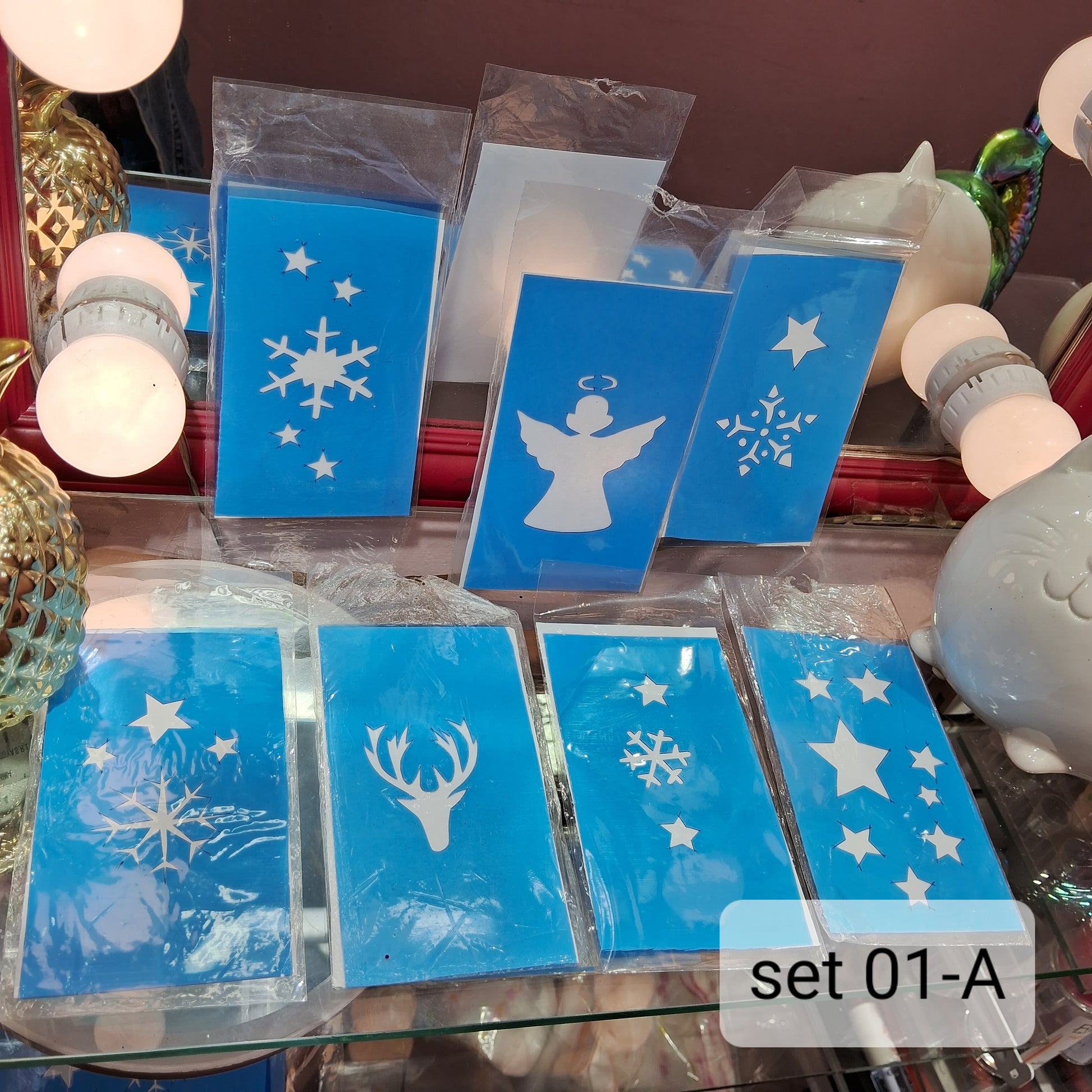 Disponible solo 4 sets de stencils ÚNICOS para esta CAMPAÑA NAVIDEÑA con modelos variados que te ayudarán un montón con el diseño de tus caritas pintadas en menos tiempo.