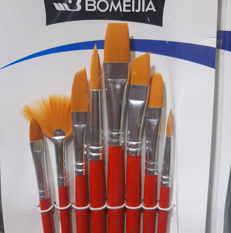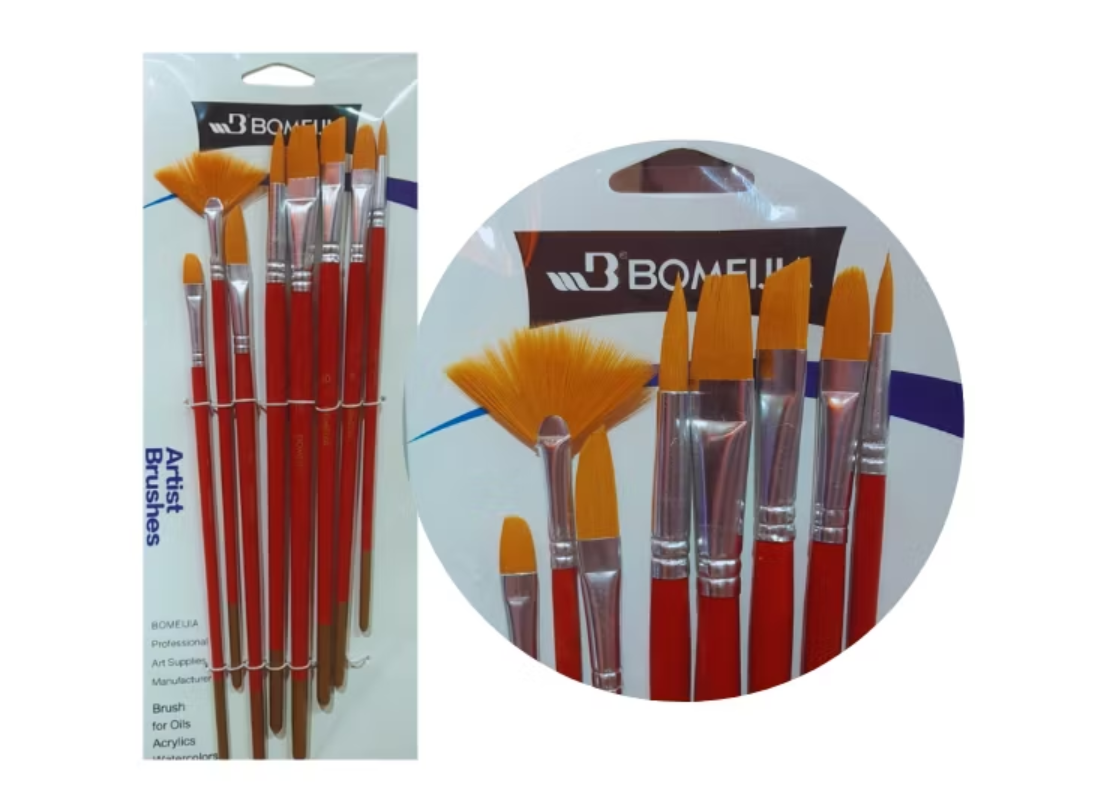 Set que incluye: pincel Biselado,planos y de punta de gota , abanico
